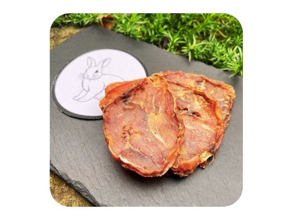 Prémiové dietní jerky ze 100% libového králičího masa. Tento nízkotučný a lehce stravitelný pamlsek je ideální pro...