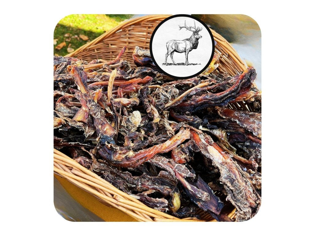 Jelení šlachy jsou přirozeně extrémně bohaté na bílkoviny a přírodní kolagen. Právě kolagen je klíčovou stavební látkou pro zdraví kloubů, vazů, šlach a kůže. Navíc se jedná o dietní pamlsek s velmi nízkým obsahem tuku.